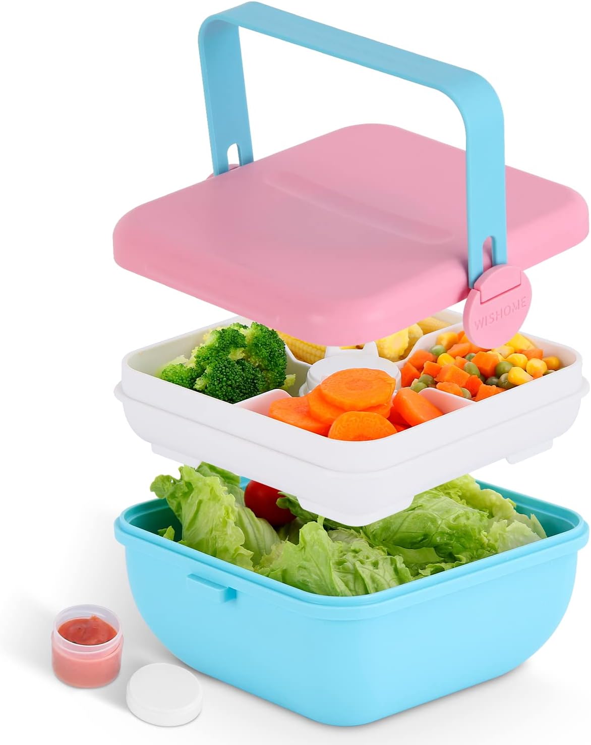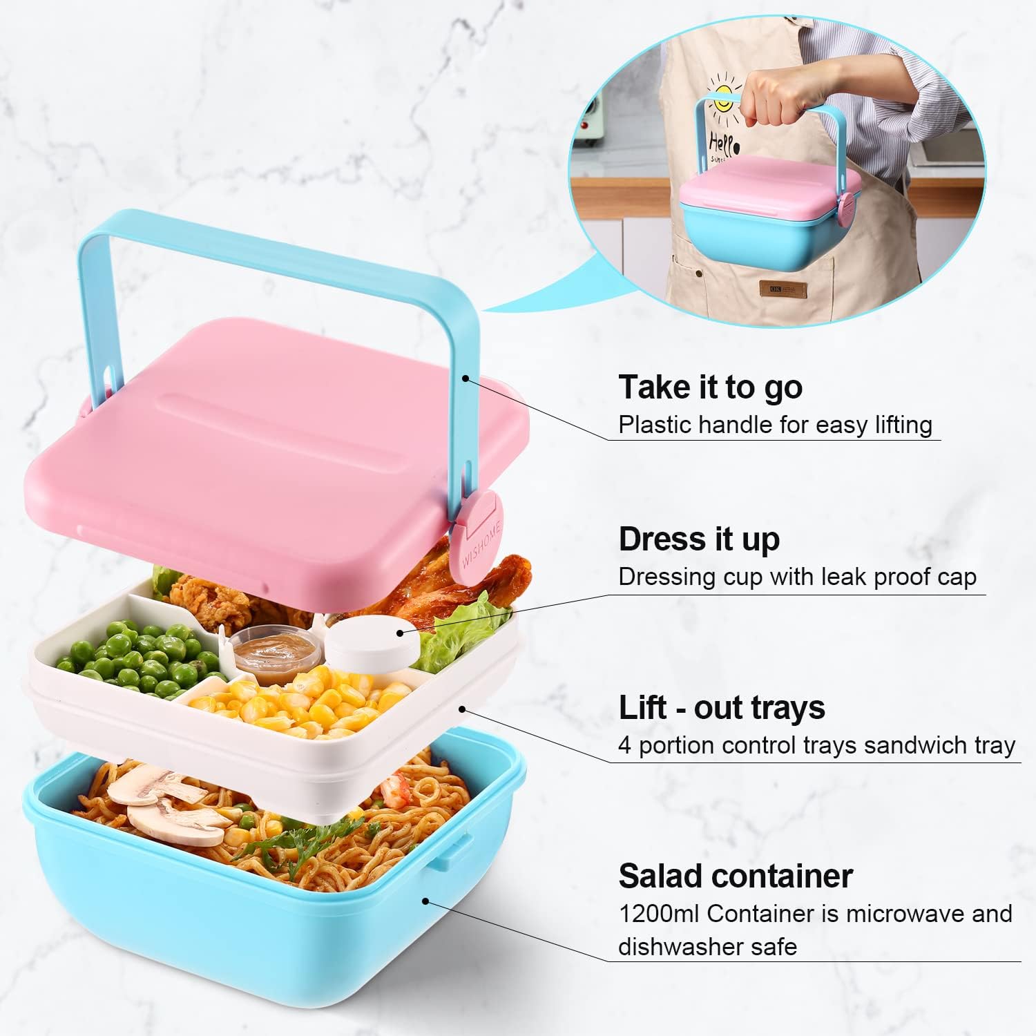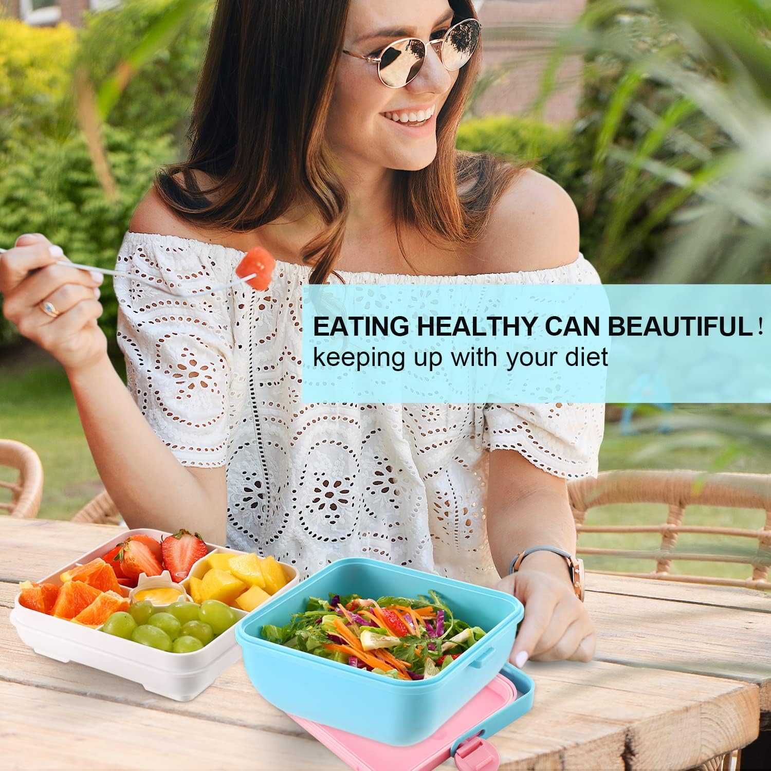 - 🥗【4 Compartments for Storage】This salad lunch container not only can store your salad, it also has 4 separate compartments for toppings. Removable vanity box and a large bowl. And can be used to separate sandwiches, snacks, fruits and other foods. Feel free to taste and mix as you like.