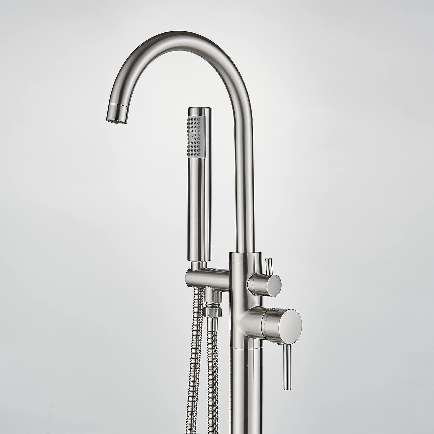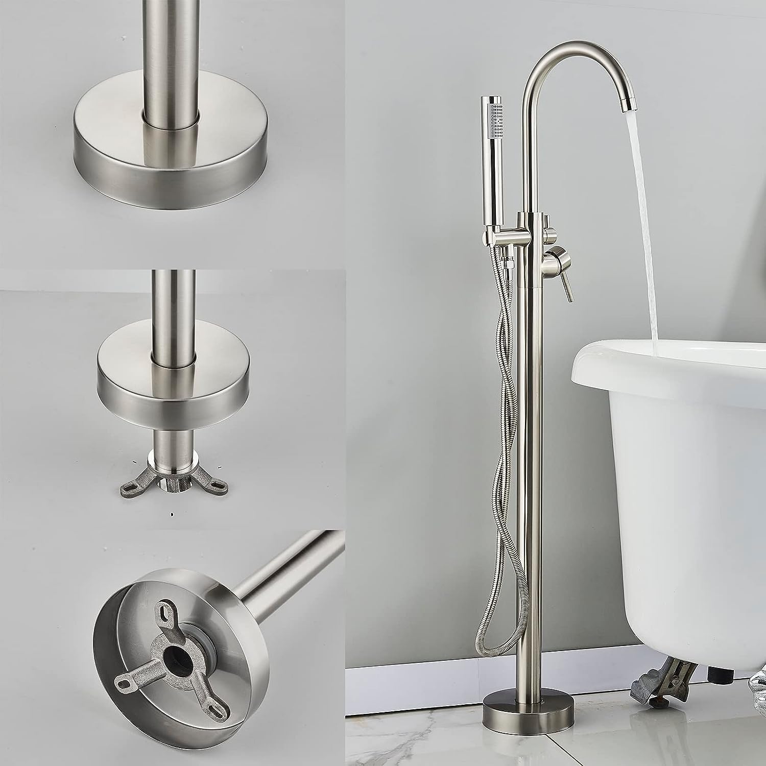 Freestanding Tub Fillers Brushed Nickel Floor Mounted Bathtub Faucets With Handheld Shower 360 Swivel Standing Spout High Flow Bathroom Metal Shower