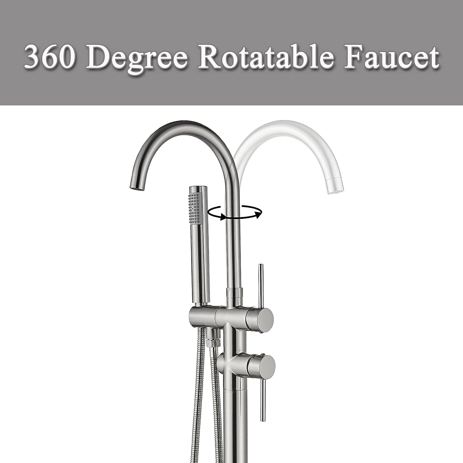 - 【360 Degree Swivel Bathroom Faucet】The freestanding tub faucet is made of brass, and the faucet can be swiveled 360 degrees. The bathtub faucet with 6 GPM high water flow not only can fill up your bathtub quickly, but also can bring you an excellent bath experience.