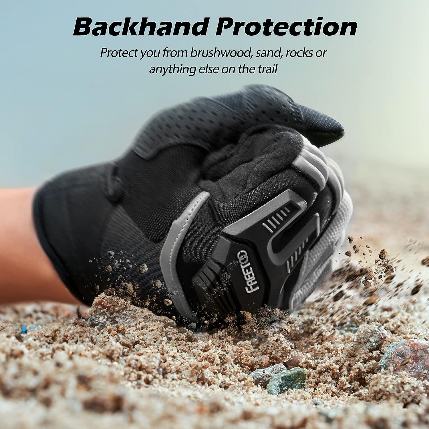 - More Protection on knuckles and top of hand: These more protective dirt bike gloves adopt robust nylon with knuckle protectors from directly injected TPR on hand back, so that you don’t need to worry about injury from brushwood, sand, rocks and anything else that might get in your way on the trail