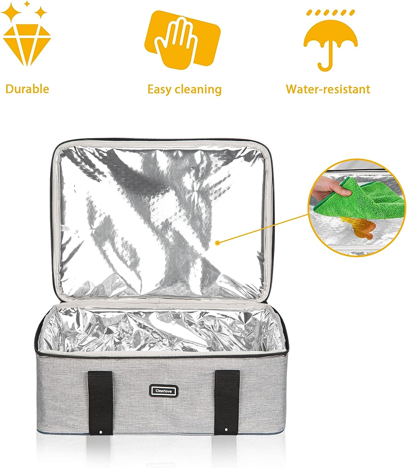 - Upgrade Design:The comfortable handles with wrap make it easy to carry while the exterior zippered pocket is perfect for small items.Lug your favorite lasagna,signature dish or dessert to best friends party!