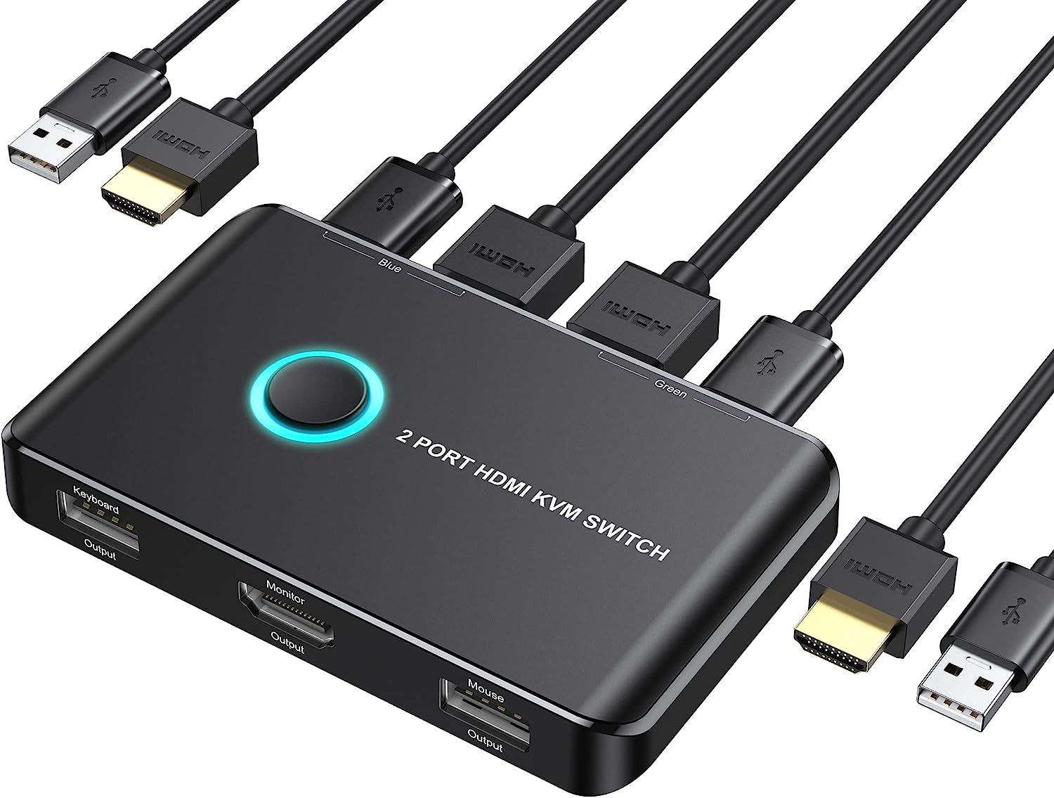 - 【USB KVM HDMI Switch】This HDMI KVM Switch allows you to control 2 computer with only one set of controls(Monitor,Mouse,Keyboard and Printer).You can easily switch between two displays.Makes your work and life much more simple and efficient.LED light color(Green or Blue) indicating the active computer.