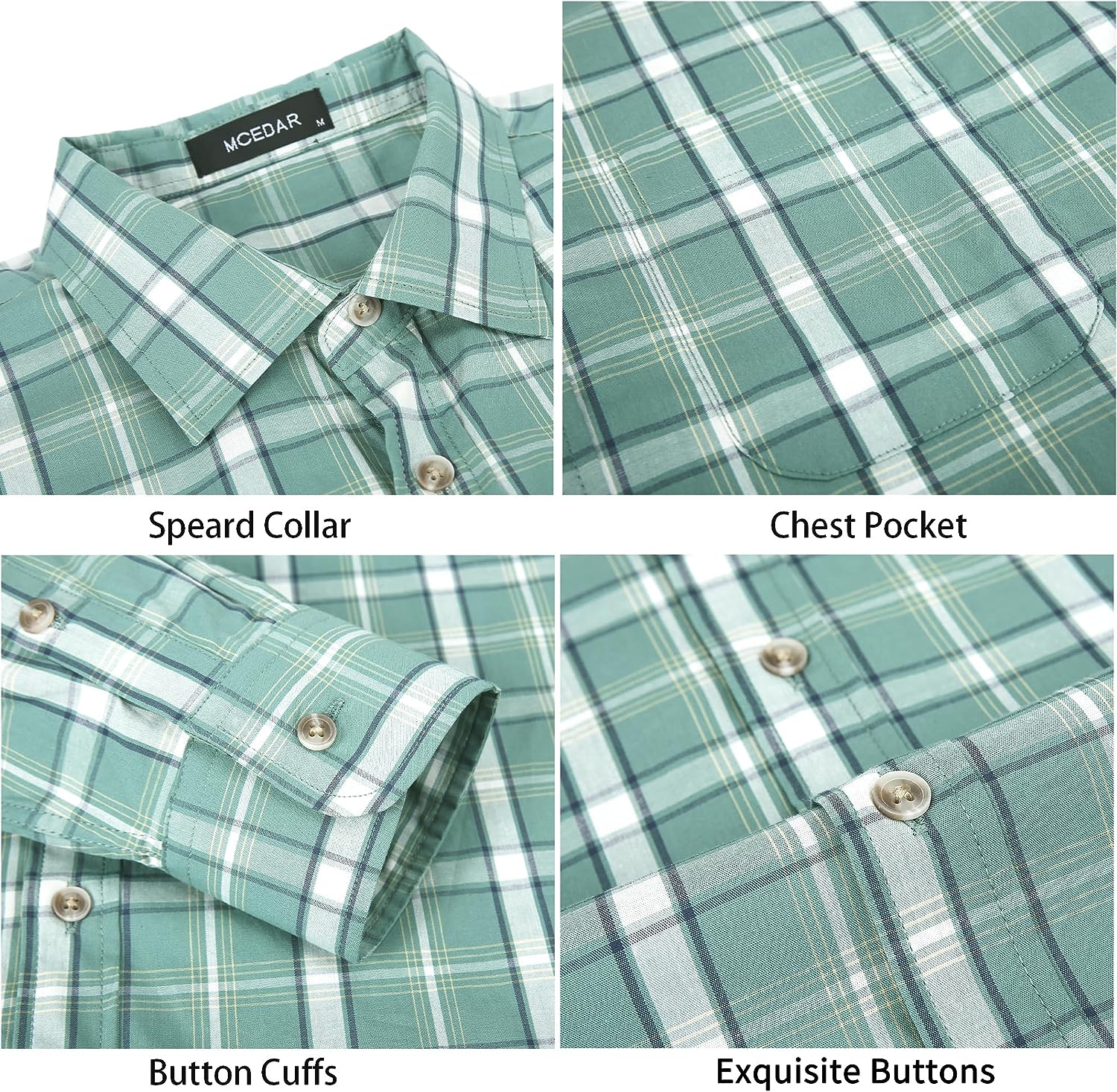 - FEATURES: This casual plaid shirt offers several notable features, including long sleeves, a comfortable fabric, a curved hem, a buttoned front closure, a chest pocket, and adjustable double-button cuffs.
