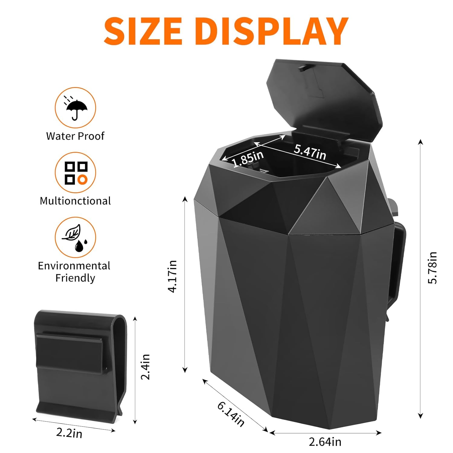 - 【Diamond Cut Design】: Exquisit Cool appearance, simple, elegant and fashionable. Not only practical but also can play a decorative role.This cute car trash can will be helpful for keeping your car clutter-free, ensuring you are in a good mood while driving.