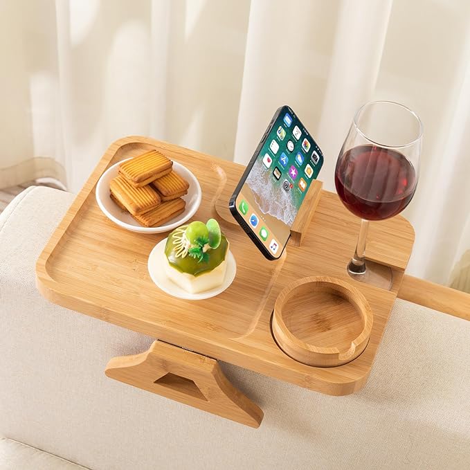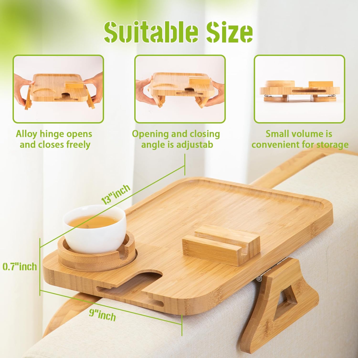 - ✔️【Make Life Easier】Convenient and versatile Natural solid bamboo sofa tray that fits various living room folding table sofa armrests, providing a stable surface for TV trays, and drinks.
