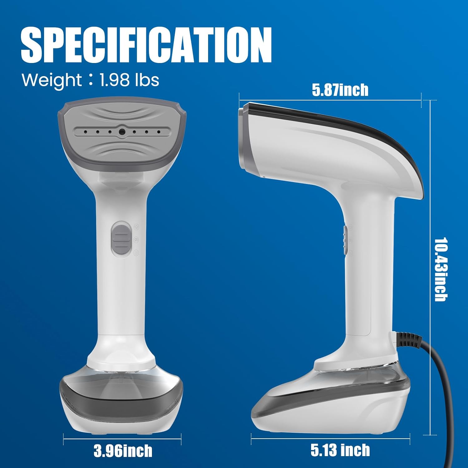 Powerful Handheld Fabric Steamer - 1800W with Fast Ceramic Heat-Up Plate, 2-in-1 Ironing & Wrinkle Remover, Steam Nozzle, Lint Brush - White, for US 120V Only