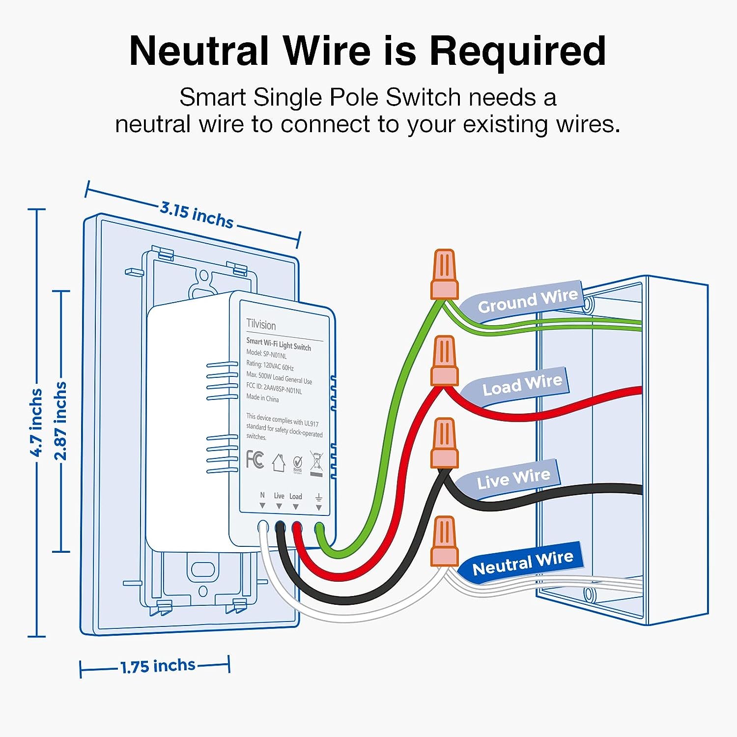 - Easy to Install: Neutral wire is required, standard wall plate size, Works in a single pole setup only. No need to understand complex switches, wiring or primary and secondary switch configurations. Support 2.4GHz Wi-Fi Only (Not support 5G).